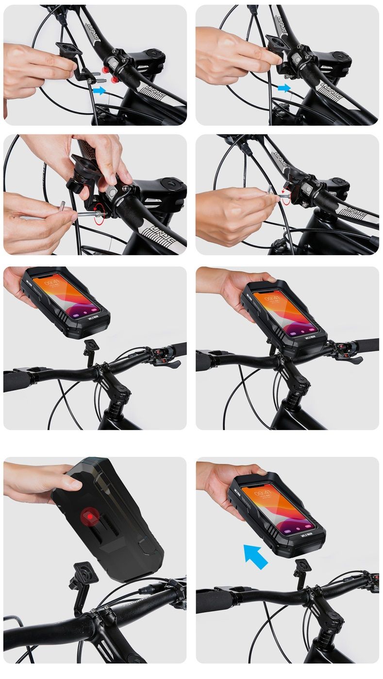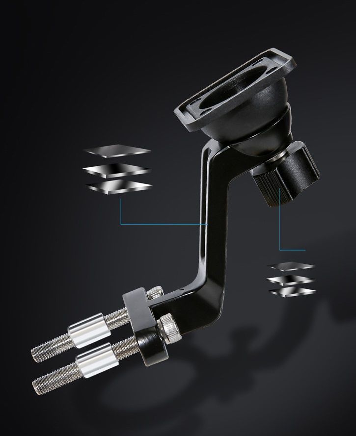 Чехол крепится к выносу через болты да, благодаря чему уменьшается тряска в отличии от ремённых креплений, также сумку можно быстро снять и забрать собой, сумка может быть установлена перпендикулярно рулю или параллельно.