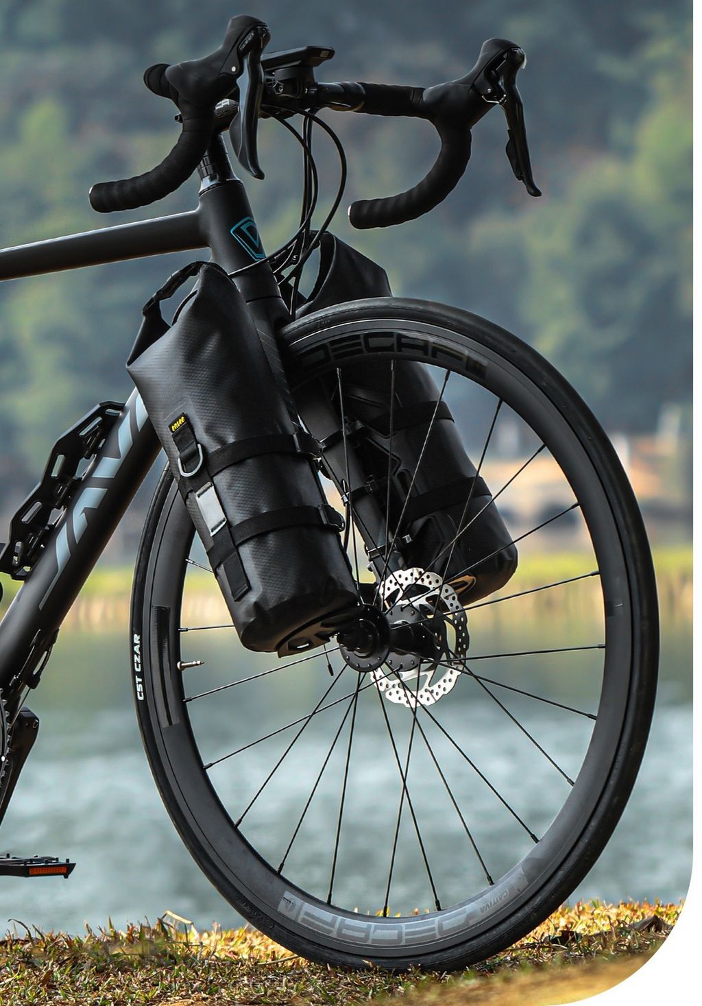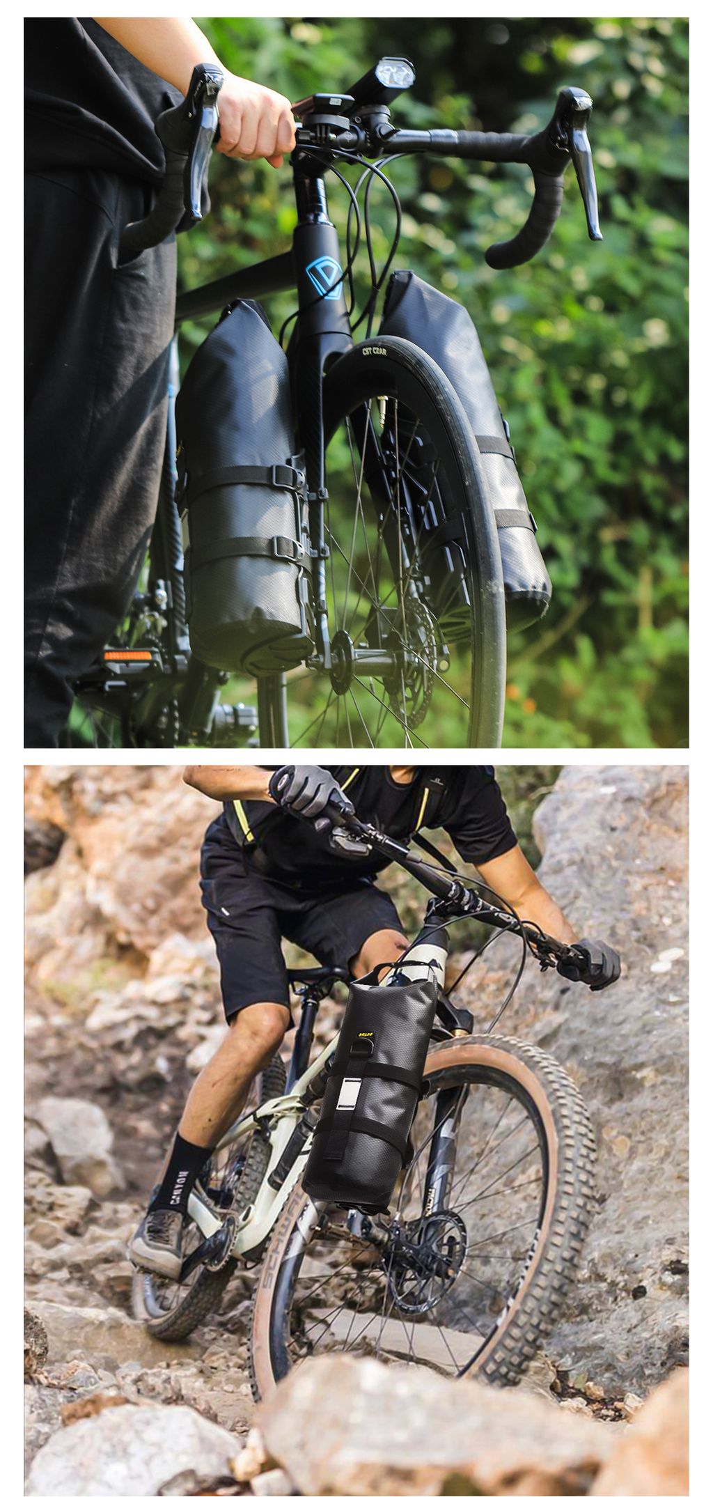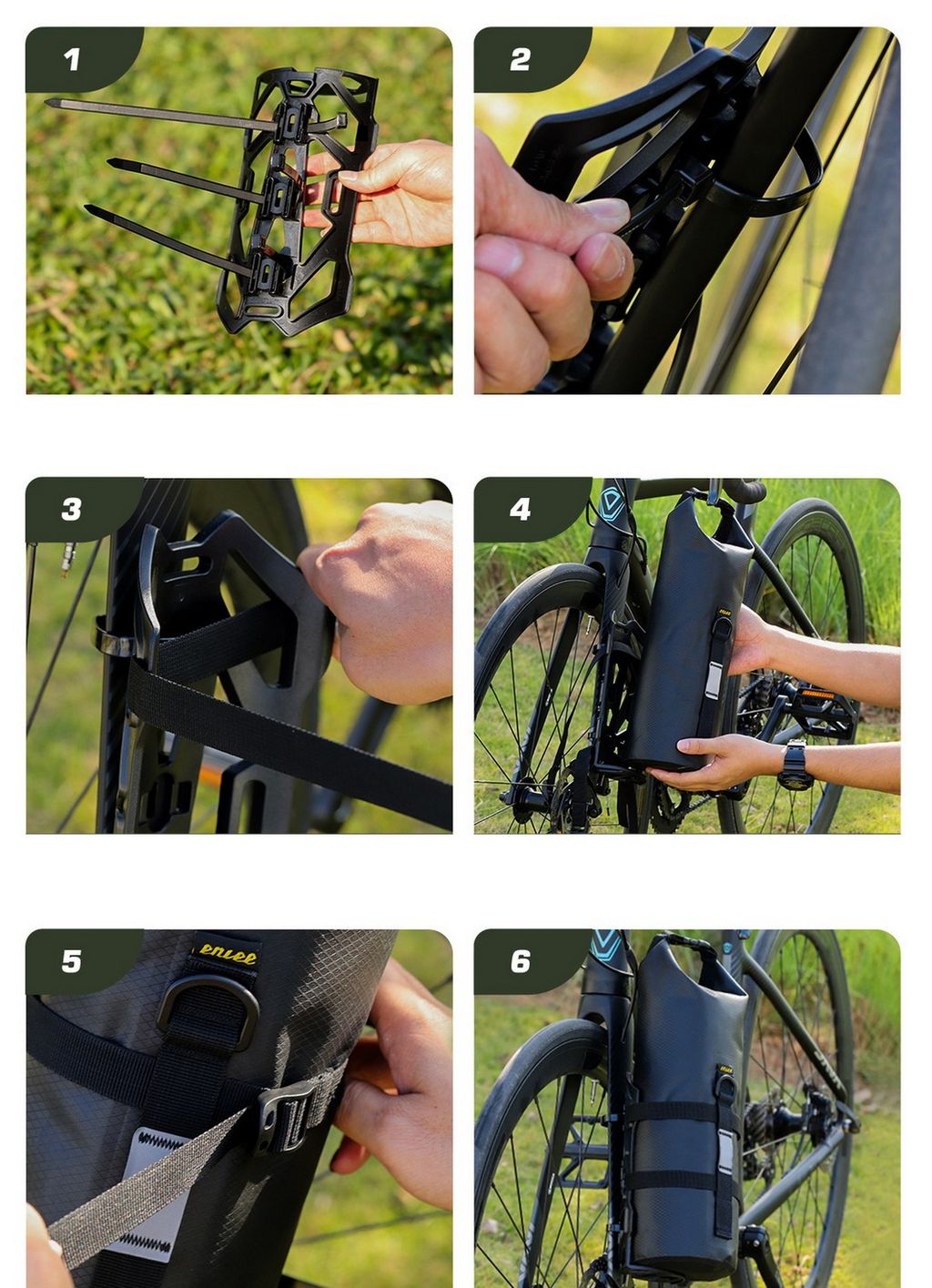 Сумка представляет из себя гермешок и пластиковое основание которое можно крепить как на болты в запланированные места на раме и вилке или на ремни, так же на основание можно закрепить колонку, термос или другой цилиндрический предмет.