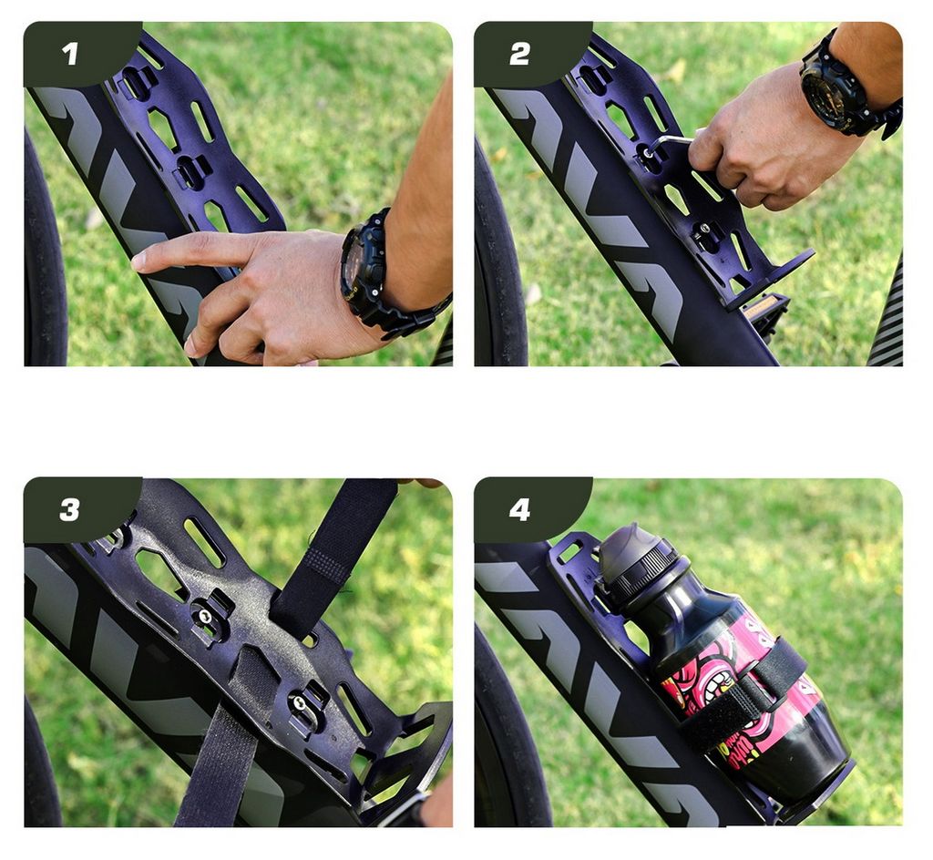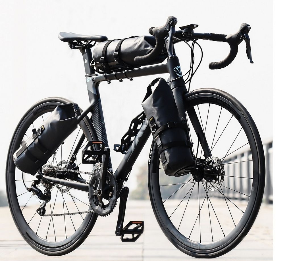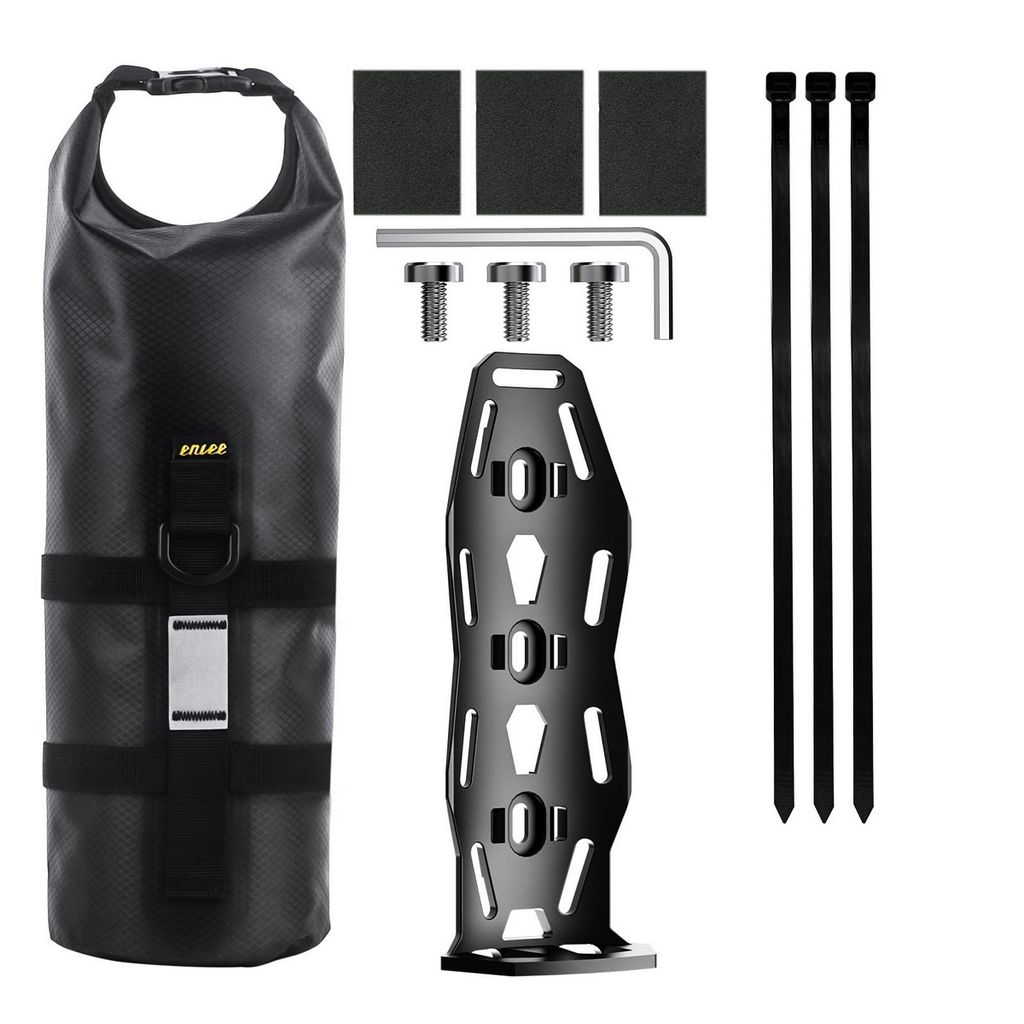 Сумка представляет из себя гермешок и пластиковое основание которое можно крепить как на болты в запланированные места на раме и вилке или на ремни, так же на основание можно закрепить колонку, термос или другой цилиндрический предмет.