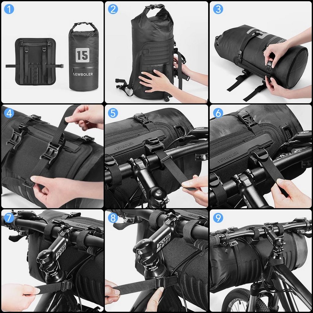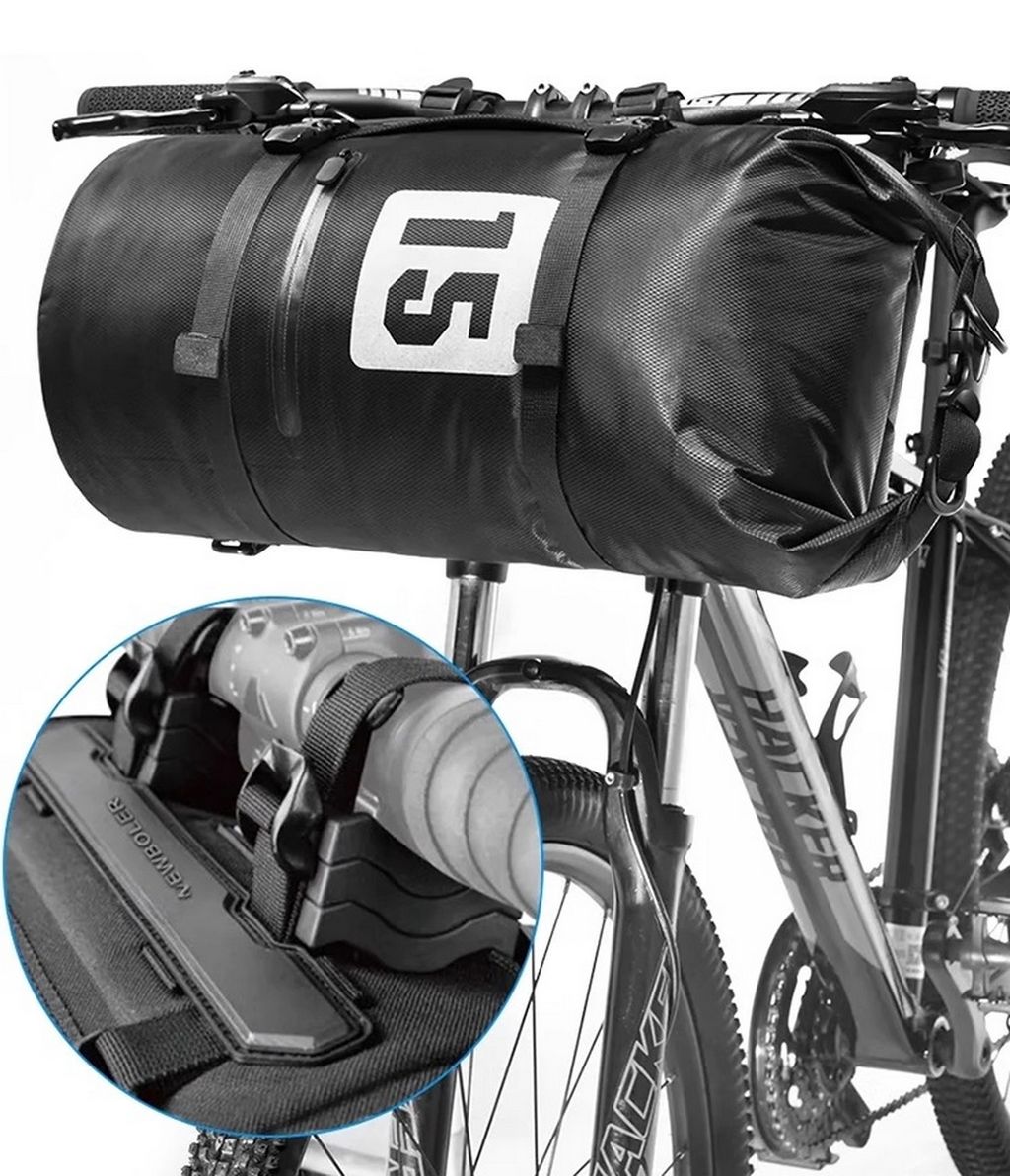 Туринговая сумка на руль, состоит из двух частей, крепления, которое устанавливается на руль и гермомешка на 15 Л. Отличие данной модели от других сумок данного бренда, в более женском крепление и в поставках благодаря которым можно более удобно установить сумку.