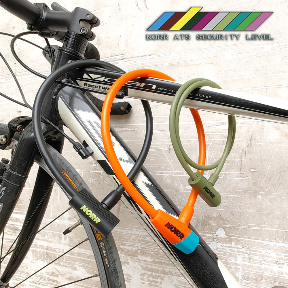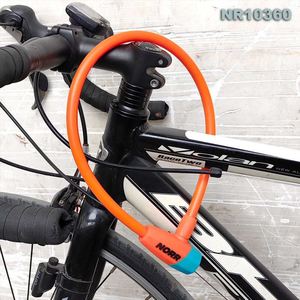 Противоугонный трос. 12 мм *60 см Трос NORR NR10180 имеет компактный размер и низкий вес, без проблем поместится в рюкзаке или вело сумке. В комплекте : 3 ключа Крепление к велосипеду Вес: 125 гр
