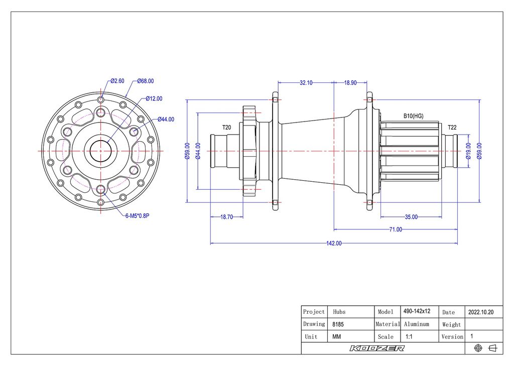 Втулка задняя KOOZER 150. 142*12 мм. 32H. HG