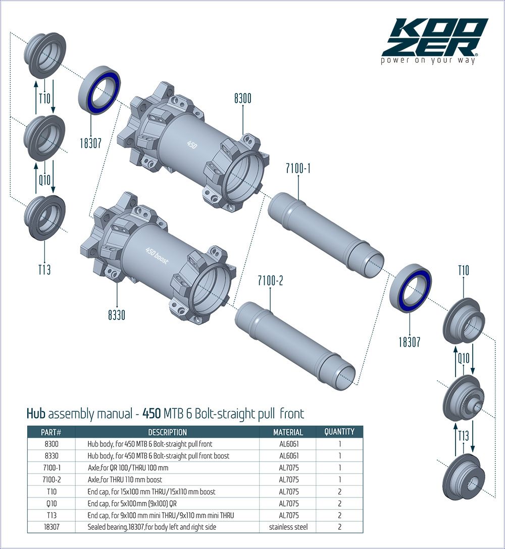 Передняя втулка KOOZER 450. 110*15мм. прямые 28H