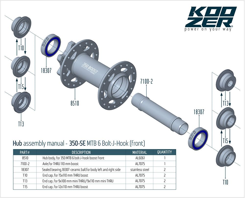 Втулка передняя KOOZER 350 Ceramic. 110*15 мм. 32H