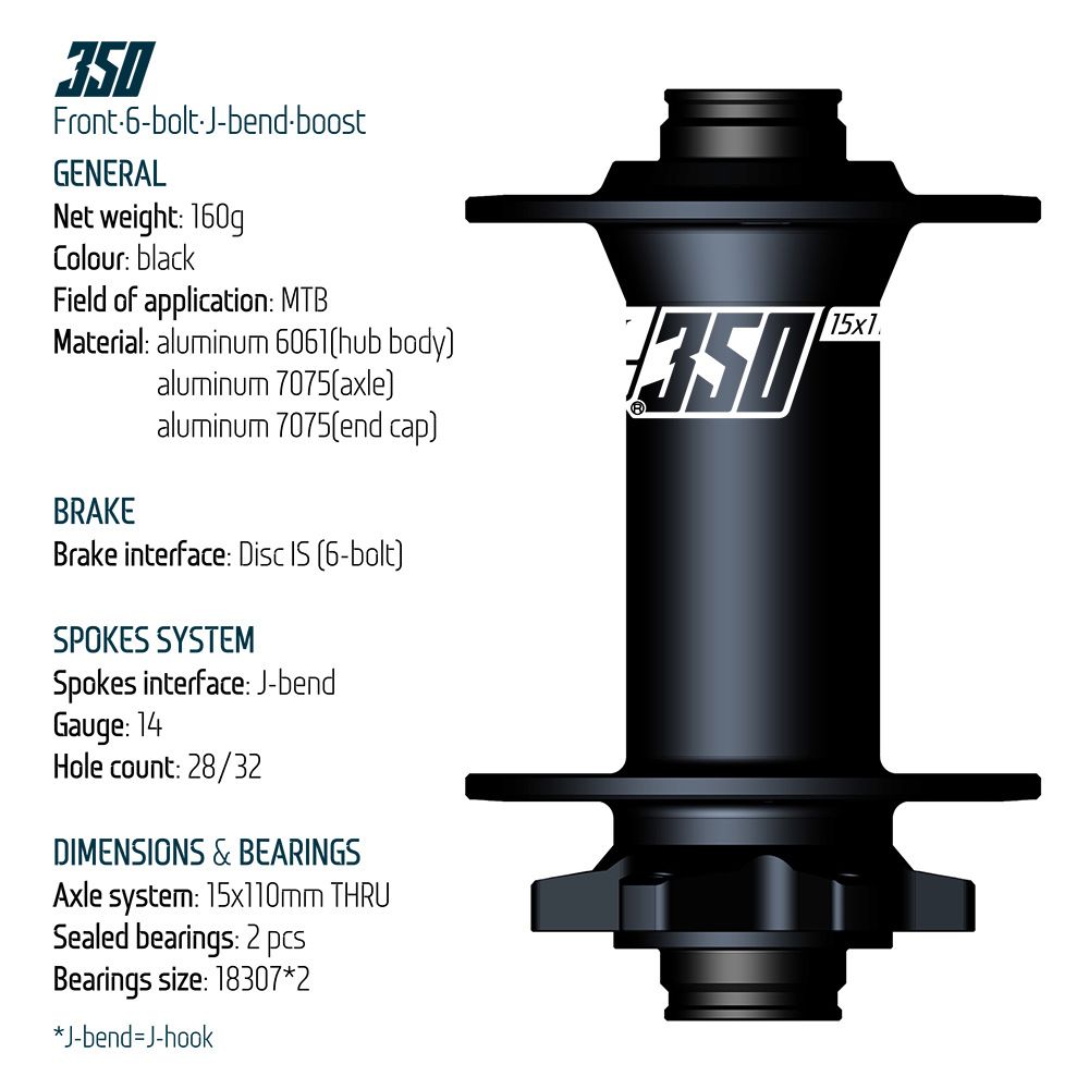 Втулка передняя KOOZER 350 Ceramic. 110*15 мм. 32H (Чёрный)