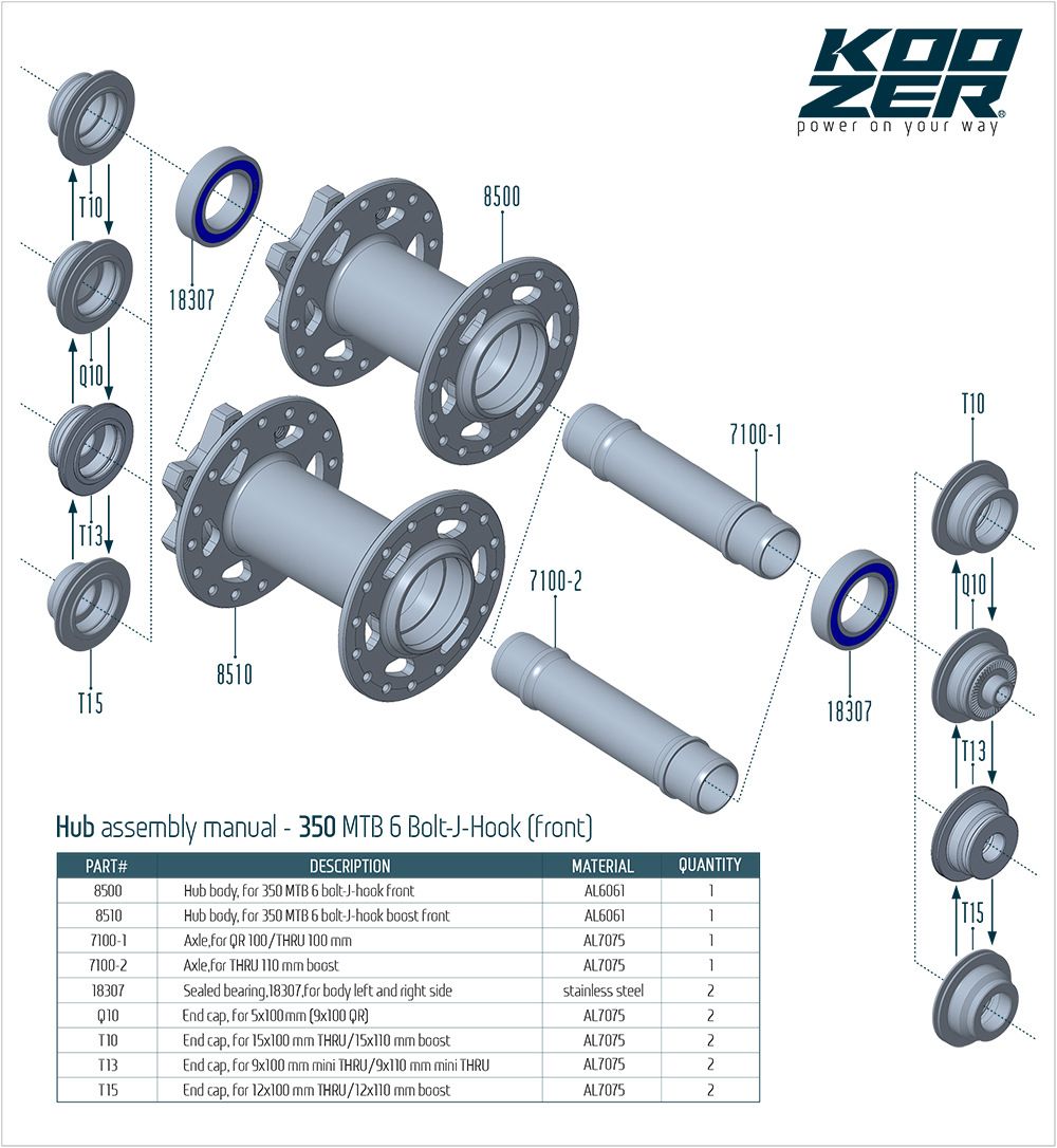 Втулка передняя KOOZER 150. 110*15 мм. 32H.
