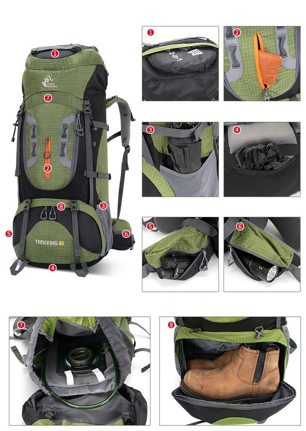 Туристический рюкзак FREE KNIGHT FK0385 на 80 литров (Зеленый)
