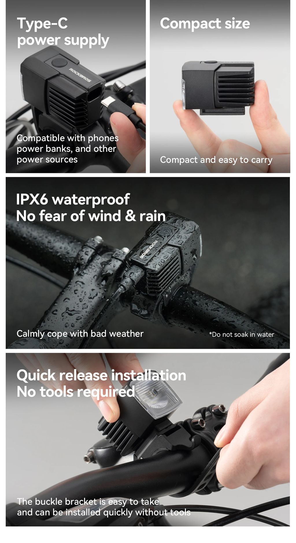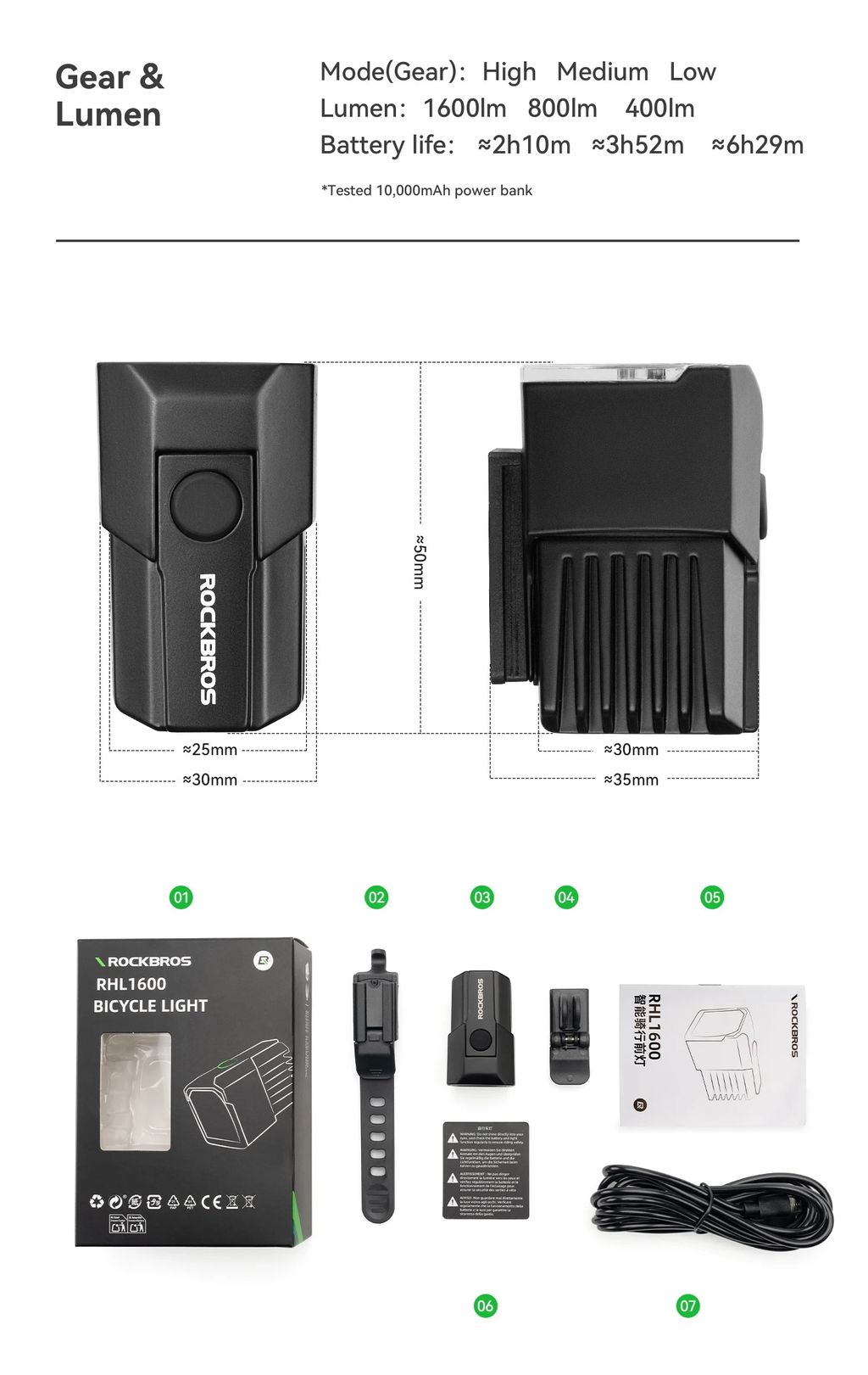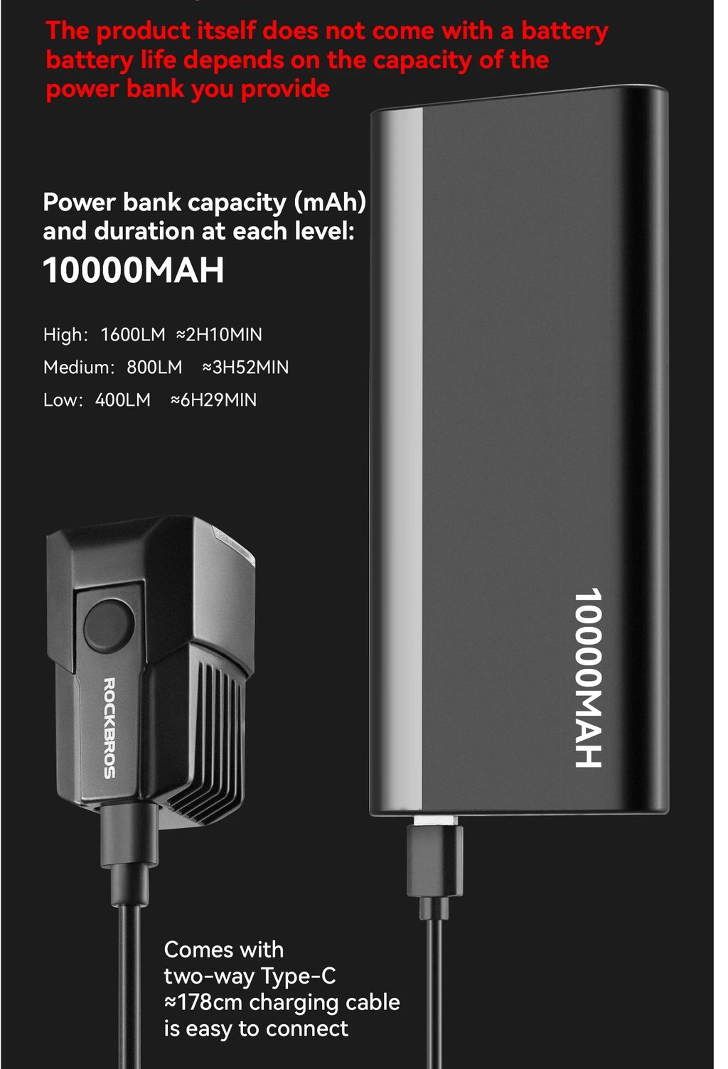 Фонарь RHL1600 поставляется без батареи, благодаря этому фонарь надежнее закрепляется на велосипеде и не боится тряски, так же вы можете выбрать объем батареи который нужен вам в поездке или подключить к батареи велосипеда (при наличии подходящего входа).