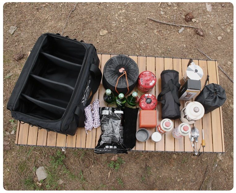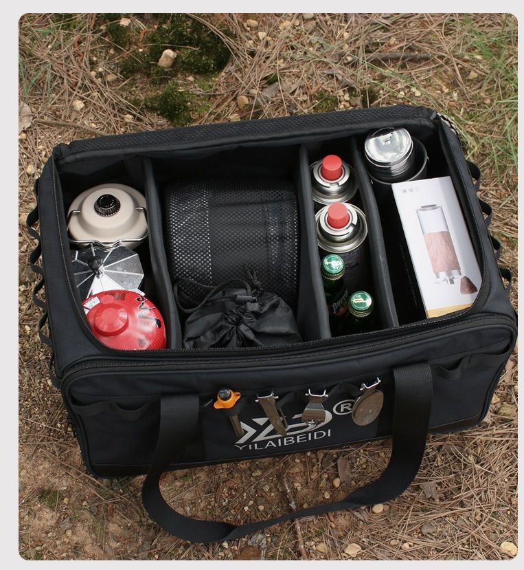 Сумка предназначена для улучшения комфорта при отдыхе на природе, облегчает сбор и использование туристического оборудования. У сумки имеются 3 перемещаемые перегородки, что позволяет настроить отсеки под ваши нужды. По периметру есть зацепы для разной мелочи, Нижняя часть выполнено из водонепроницаемого материала (TPU). Имеется боковой карман и сетка на крышке сумке.