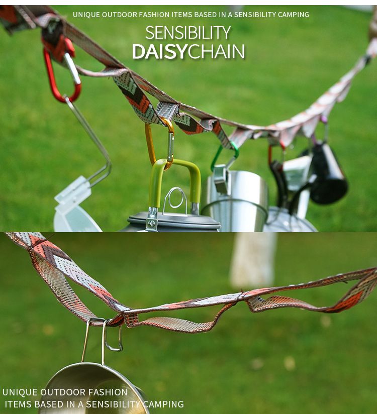 Даная веревка предназначена для хранения вашей утвари, или установки фонаря, крючки имеют механизм фиксации, их можно зафиксировать в нужных местах. В плетении есть светоотражающая нить
