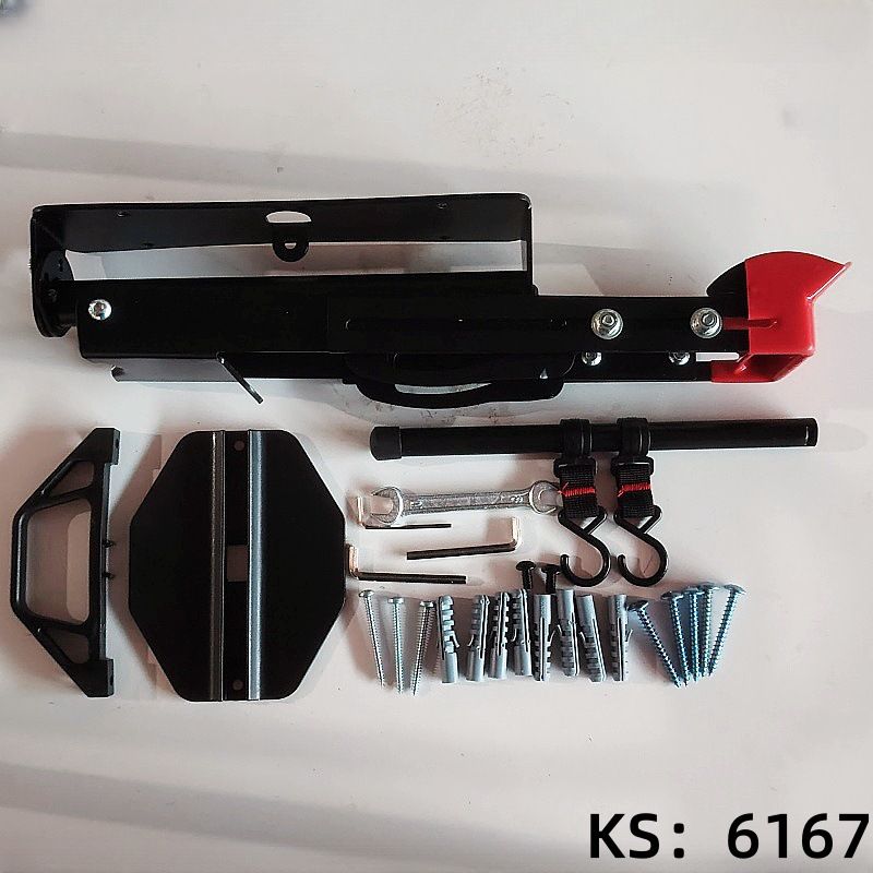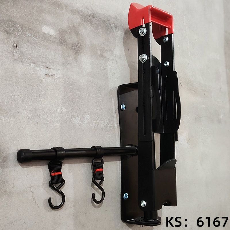 Крепление позволяет хранить велосипед вертикально колесами к стене, благодаря поворотному механизму велосипед можно повернуть к стене, эта функция особенно удобна если хранить 2 велосипеда рядом. Так же имеется штанга с крючками на которые можно повесить шлем, рюкзак, и другие аксессуары.