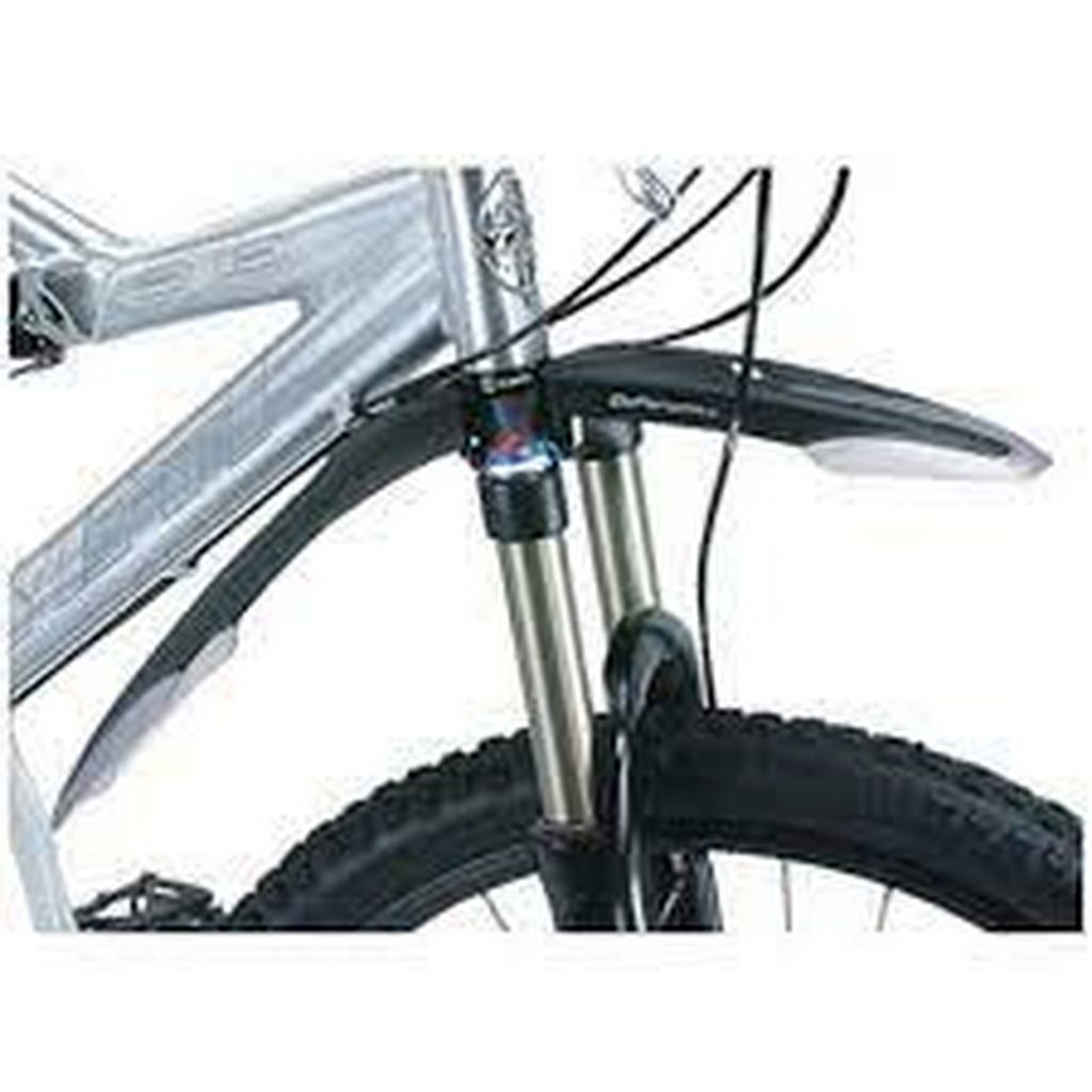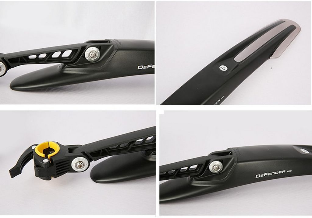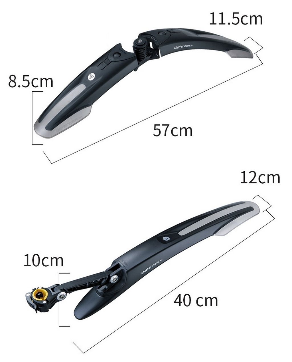 Комплект крыльев DeFender M1 &M2 Fender Set предназначен для 26 дюймовых колес горного велосипеда. Переднее крыло крепится на амортизационную вилку, заднее - на подседельный штырь. Задний угол регулируется. Переднее: Крепление вилки QR подходит для диаметра 19,6 - 26 мм и 27,7 - 35 мм рулевой трубки (M1). Заднее: Зажим QR-соединения подходит для подседельного штыря диаметром 25,4 - 34,9 мм (M2). Размер: 57 x 11,5 x 8,5 см (M1 переднее) 40 x 12 x 10 см (M2 заднее)