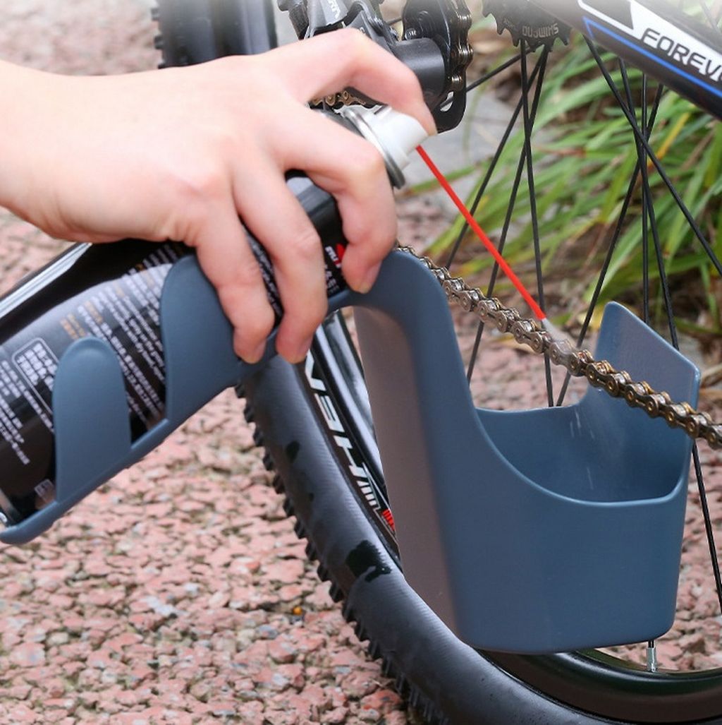 Приспособление позволяет сделать чистку цепи более чистым, чистящая жидкость попадает сразу в резервуар. Просим принять к сведению что у баллона должен имеется удлинитель