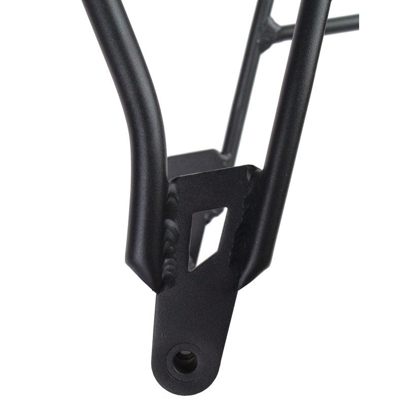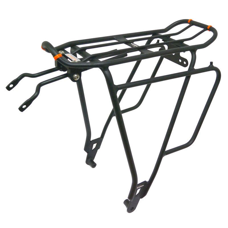 Надежный сварной алюминиевый багажник рассчитан на велосипеды с колёсами диаметром в 29 дюймов. На таком багажнике можно перевозить с собой личные вещи весом максимум 25 кг. Багажник крепится сзади, совместим с дисковыми тормозами, легко устанавливается. Конструкция долговечна, устойчива к повреждениям и максимально удобна в использовании. Вес: 760 г.
