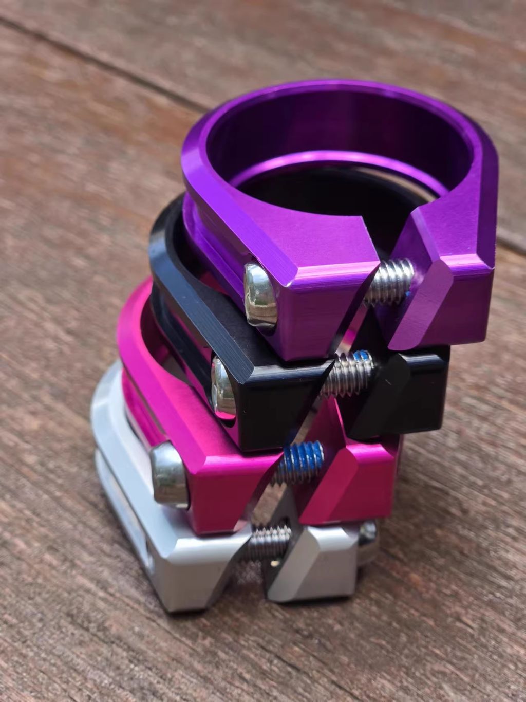 Хомут для подседельного штыря. Затяжка данного штыря происходит с помощью шестигранника, что позволяет дозировать усилие, это необходимо когда вы используете карбоновые подседельные штыри. Так же данный хомут удобно использовать с дроперрами.