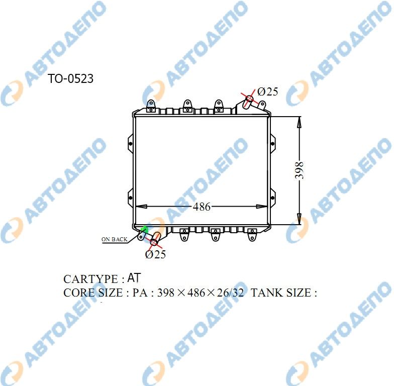 Радиатор охлаждения двигателя. TOYOTA HIACE TO-0523-32