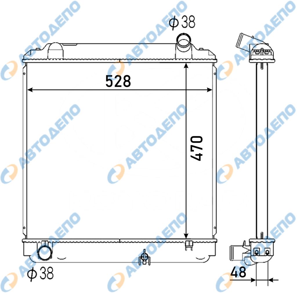 Радиатор охлаждения двигателя. TOYOTA, HINO DYNA, TOYOACE, RANGER BU102, U102D, BU112, BU12A, BU112AD, BU120, BU140, BU142, XZU130, RZU100, XZU140, BU100 TO-0405-48-K