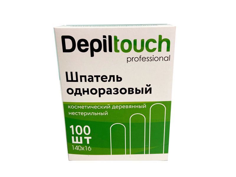 Шпатель деревянный нестерильный, серии "DepilTouch", 100 шт/упаковка, Россия 87805 Длина - 14 см, ширина - 1,6 см.