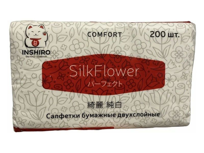 Салфетки бумажные INSHIRO, серия "SilkFlower" двухслойные (мягкая упаковка), 200 шт/упаковка, Китай