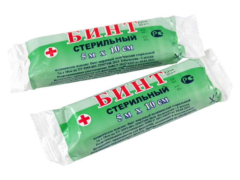 Бинт 5*10 марлевый медицинский стерильный, плотность 36 г/м2 (Т1), Россия (Ткацкая фабрика 2)