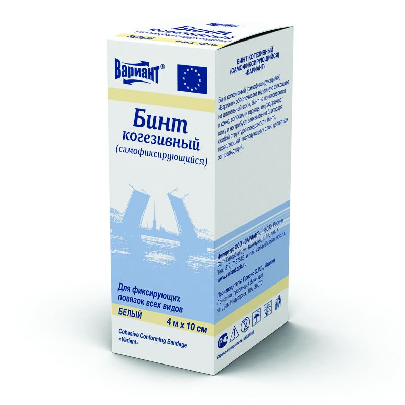Бинт когезивный (самофиксирующийся) "Вариант" (Cohesive Conforming Bandage "Variant"), размер 4 м*10 см, цвет белый, в индивидуальной упаковке, Италия ("Превис С. Р. Л.")