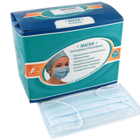 Маска трехслойная на резинках нестерильная (голубая), 100 шт/упаковка, Россия (Гекса-нетканые материалы)