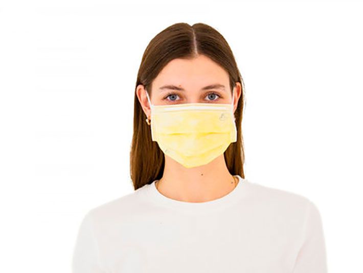 Маска трехслойная на резинках нестерильная (желтая), 100 шт/упаковка, Россия (Гекса-нетканые материалы)