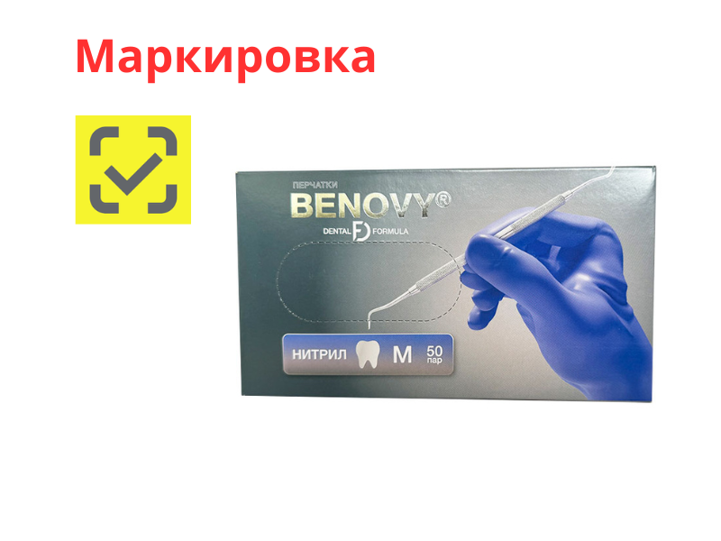 Перчатки медицинские диагностические (смотровые) одноразовые нестерильные "Benovy Dental Formula" нитриловые текстурированные на пальцах, неопудренные с однократной хлоринацией (манжета с валиком), цвет сиреневый, размер M, 50 пар/упаковка, Китай