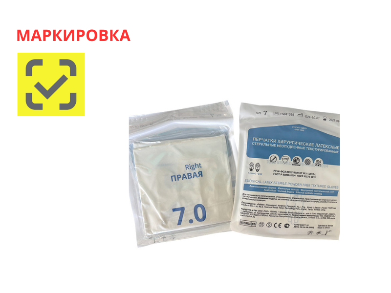 Перчатки Raysen медицинские хирургические латексные стерильные неопудренные, текстурированные, одноразовые, цвет белый, размер 7,0, 50 пар/упаковка, Китай (Raysen (Tianjin) Healthcare Products Co., Ltd.)