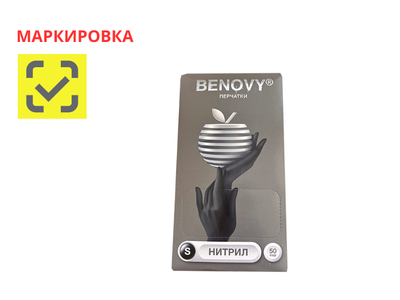 Перчатки медицинские диагностические (смотровые) одноразовые нестерильные "Benovy" нитриловые текстурированные на пальцах, однократной хлоринации, черные, размер S, 50 пар/упаковка, Китай ("Блю Сэйл Медикал Ко., Лтд.") M226K2