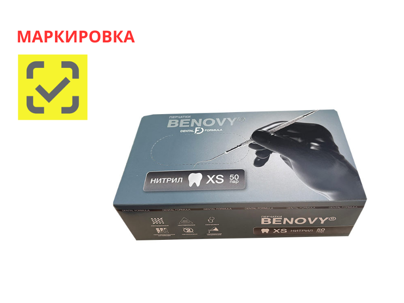 Перчатки медицинские диагностические (смотровые) одноразовые нестерильные "Benovy" нитриловые текстурированные на пальцах, однократной хлоринации, черные, размер XS, 50 пар/упаковка, Китай ("Блю Сэйл Медикал Ко., Лтд.") M226K1