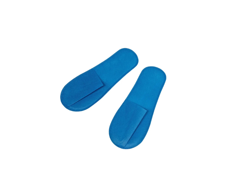 Тапочки с закрытым мысом из спанбонда обеспечивают надежную защиту ног клиентов. Используются в соляриях, фитнес-клубах, медицинских и косметологических кабинетах, в хостелах и гостиницах. Индивидуальная упаковка. Правый/левый. Не предназначены для использования на мокром и влажном покрытии. Состав: подошва вспененный полиэтилен (5 мм); Низ и верх - спанбонд 60 г/м2.
