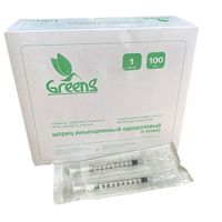 Шприц инъекционный инсулиново-туберкулиновый 1 мл с иглой 27G*1/2" (0,4*13 мм) одноразовый (Greens), 100 шт/упаковка, Республика Корея (Bu Kwang Medical Inc.)