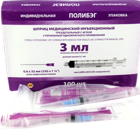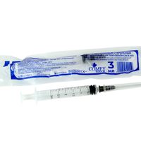Шприц 3 мл (см3) с иглой 22G*1 1/4 (0,7*30 мм) Comfy Touch одноразовый стерильный (крепление luer slip), 100 штук/упаковка, Китай (Huaian City Hengchun Medical Products Co., Ltd)