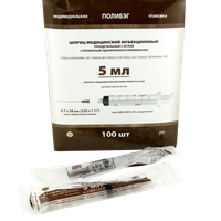 Шприц 5 мл (см3) с иглой 22G*1 1/2 (0,7*38 мм) Comfy Touch одноразовый стерильный (крепление luer slip), 100 штук/упаковка, Китай (Huaian City Hengchun Medical Products Co., Ltd)