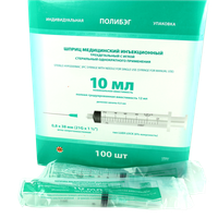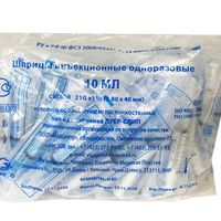 Шприц 10 мл (см3) с иглой 21Gх1 1/2 (0,8*40 мм) одноразовый стерильный, соединение луер-слип, 50 шт/упаковка, П/Э, Китай (Changzhou Jinlong Medical Plastic Appliance Co. Ltd.)