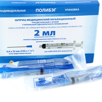 Шприц 2 мл (см3) с иглой 22G*1 1/4 (0,7*30 мм) Comfy Touch одноразовый стерильный (крепление luer slip), 100 штук/упаковка, Китай (Huaian City Hengchun Medical Products Co., Ltd)