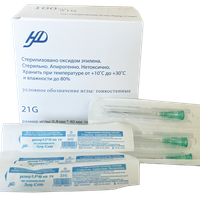 Игла инъекционная 21G (0,8*40 мм) медицинская, однократного применения, стерильная, тип крепления "Луер", 100 шт/упаковка, Китай (Jiangxi Hongda Medical Equipment Group Ltd)