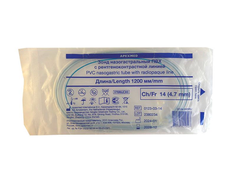 Зонд назогастральный Apexmed СН/FR14, 120 см. С РКЛ, одноразовый, стерильный, Нидерланды (Apexmed International B. V.) 0123-03-14