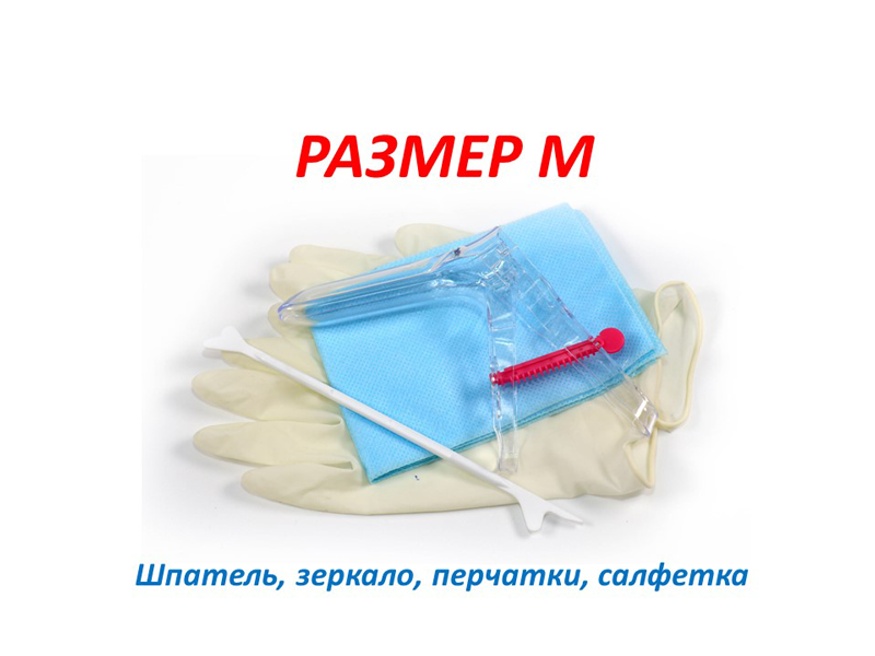 Набор гинекологический смотровой "Юнисет" (зеркало по Куско, перчатки, салфетка, шпатель), размер M, 100 наборов/упаковка, Россия (ООО "Медицинские изделия")