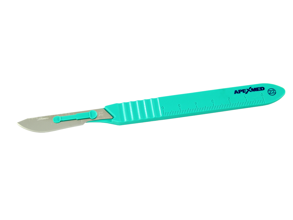 Скальпель Apexmed одноразовый с пластмассовой ручкой №22 из нержавеющей стали 10 шт/упак. Steeluxe, стерильный, Нидерланды (Apexmed International B.V.) 0602-03-22