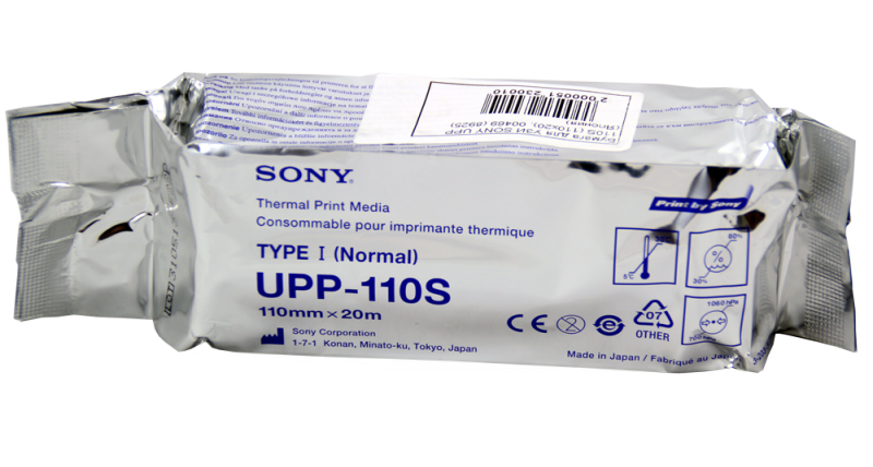Бумага для Узи Sony UPP-110S (Standart), тип (Normal) - предназначенна для черно-белой печати высокого качества формата A6 - является стандартным носителем печати для термопринтеров Sony: UP-860, UP-870, UP-890, UP-895, UP-897, UP-D860, UP-D890, UP-D895, UP-D897 и их модификаций (с буквами CE, MD, MDW и т.п.), а так же OEM-принтеров Aloca.