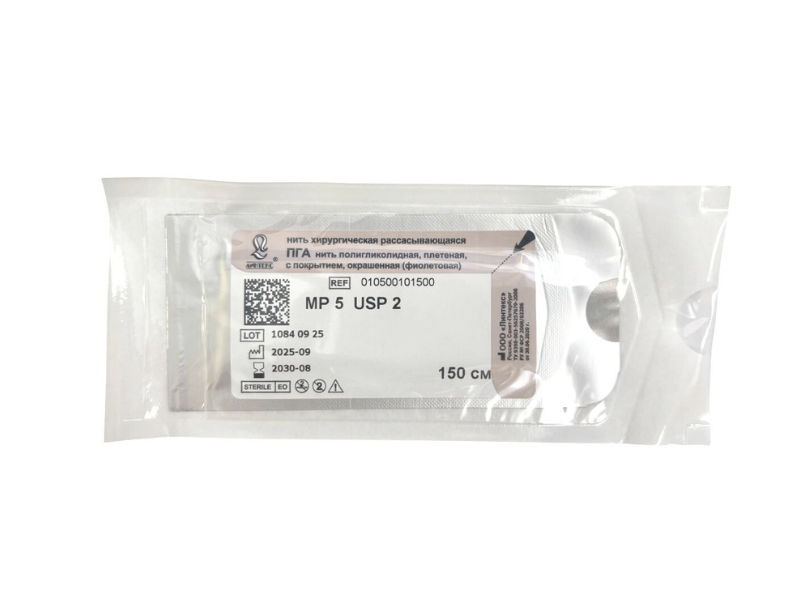 ПГА плетеный фиолетовый МР(5), USP(2), длина 150 см, без иглы, Россия (ООО "Линтекс") 010500101500