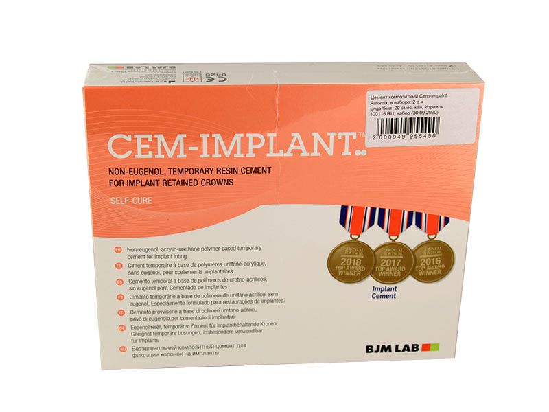 BJM Cem - Implant Auto Mix - композитный цемент для фиксации на длительный срок постоянных и временных реставраций на имплантатах. Обеспечивает прочную фиксацию, позволяя при этом относительно легко снять конструкцию. Удобен в работе, не имеет вкуса и запаха.