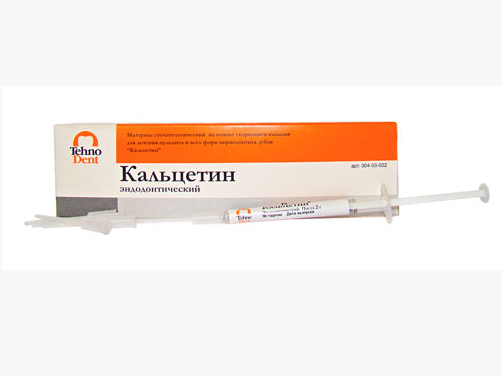 Кальцетин (эндодендрическая паста), материал стоматологический на основе гидроокиси кальция для лечения пульпита и всех форм периодонтита зубов, шприц 2 г, Россия (ООО "ТехноДент") 004-03-002