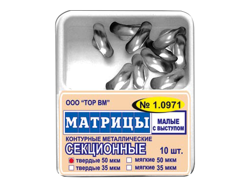 Матрицы металлические секционные (малые с выступом), твердые 50 мкм, 10 шт/упаковка, Россия (ООО "ТОР ВМ") 1.0971