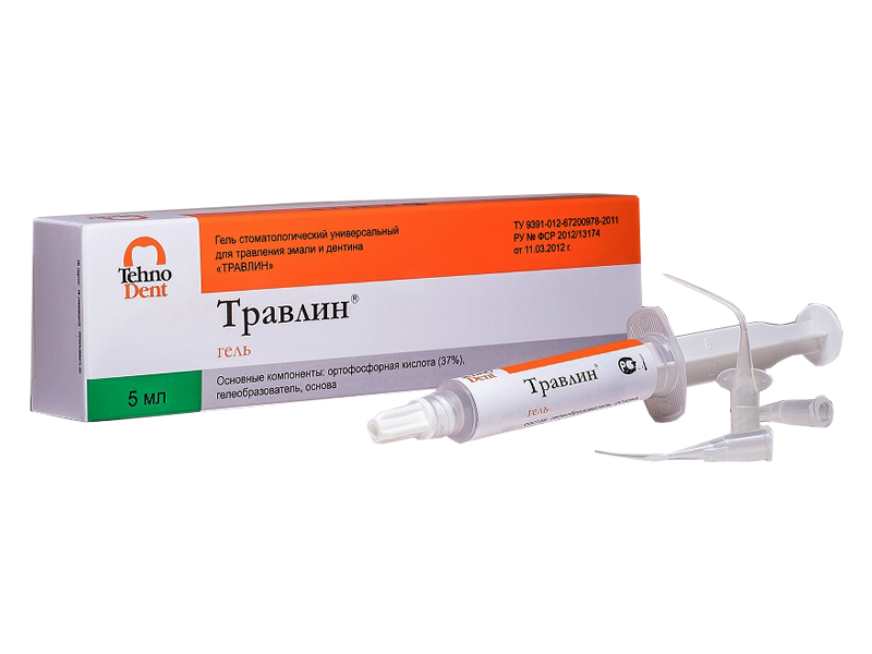 Травлин, гель стоматологический универсальный для травления эмали и дентина, 5 мл, Россия (ООО "ТехноДент") 030-02-5.0 (012-01-005)