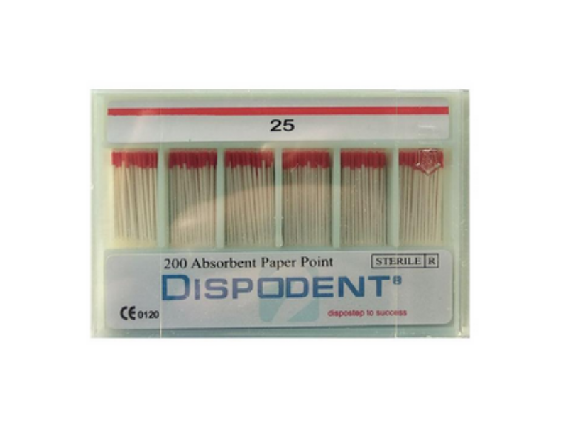 Штифт эндоканальный абсорбирующий бумажный "Dispodent", размер №25, конусность 02, 200 штук в упаковке, Вьетнам ("Перл Дент Ко., Лтд.")