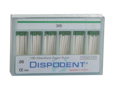 Штифт эндоканальный абсорбирующий бумажный "Dispodent", размер №35, конусность 06, 100 штук в упаковке, Вьетнам ("Перл Дент Ко., Лтд.")