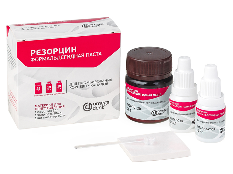 Резорцин формальдегидная паста для пломбирования корневых каналов, 25 г+10 + 10 мл, Россия (ООО "НКФ Омега-Дент")
